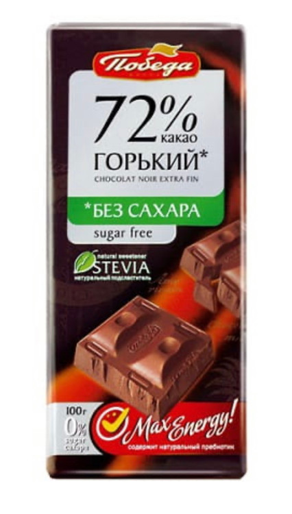 شکلات تلخ ٧٢٪بدون قند رژیمی پوبدا(ساخت روسیه)
